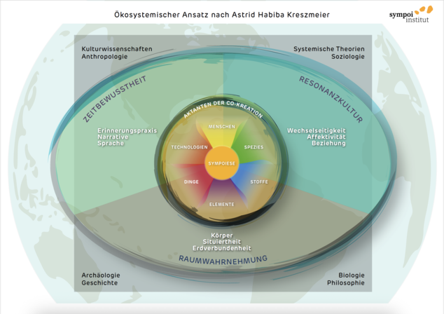 Der ökosystemische Ansatz nach Astrid Habiba Kreszmeier folgt systemischem Denken mit einer bewussten Einbeziehung des Kontexts Erde, den Spezies, Stoffen, Elementen, Dingen und Technologien.